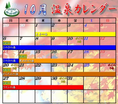 ※Cleaning date(Bath time from 15:00):6th, 14th, 20th, 27th